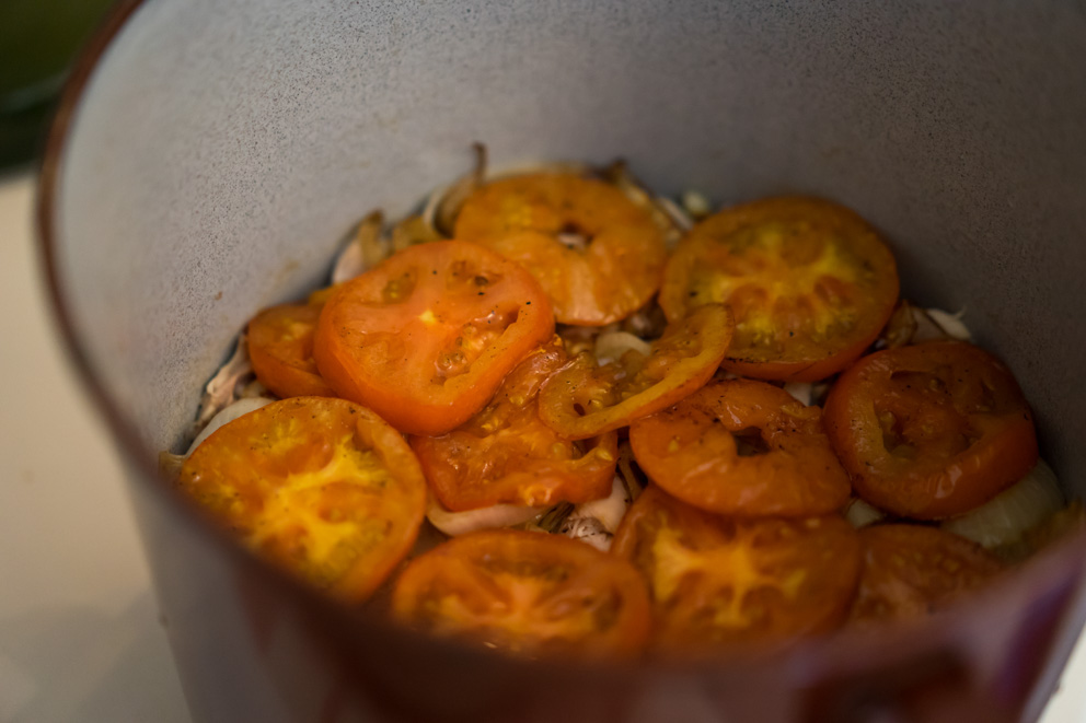 (Achtung: Das folgende Rezept entspricht nicht ganz den Bildern. Wir haben statt dem Lamm- Hühnerfleisch und zusätzlich Kartoffeln und Tomaten verwendet)